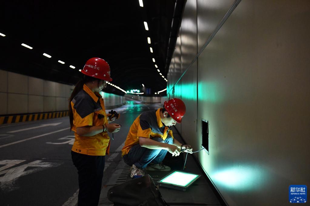 8月14日,工人們在營(yíng)盤(pán)路隧道檢修。