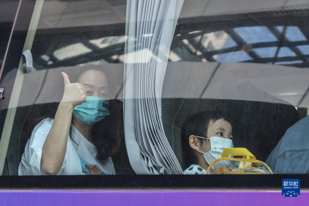 8月14日,準備返程的旅客乘坐前往??诿捞m機場(chǎng)的大巴車(chē)。
