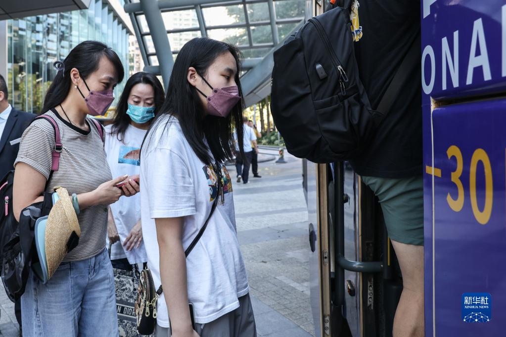 8月14日,準備返程的旅客登上前往??诿捞m機場(chǎng)的大巴車(chē)。