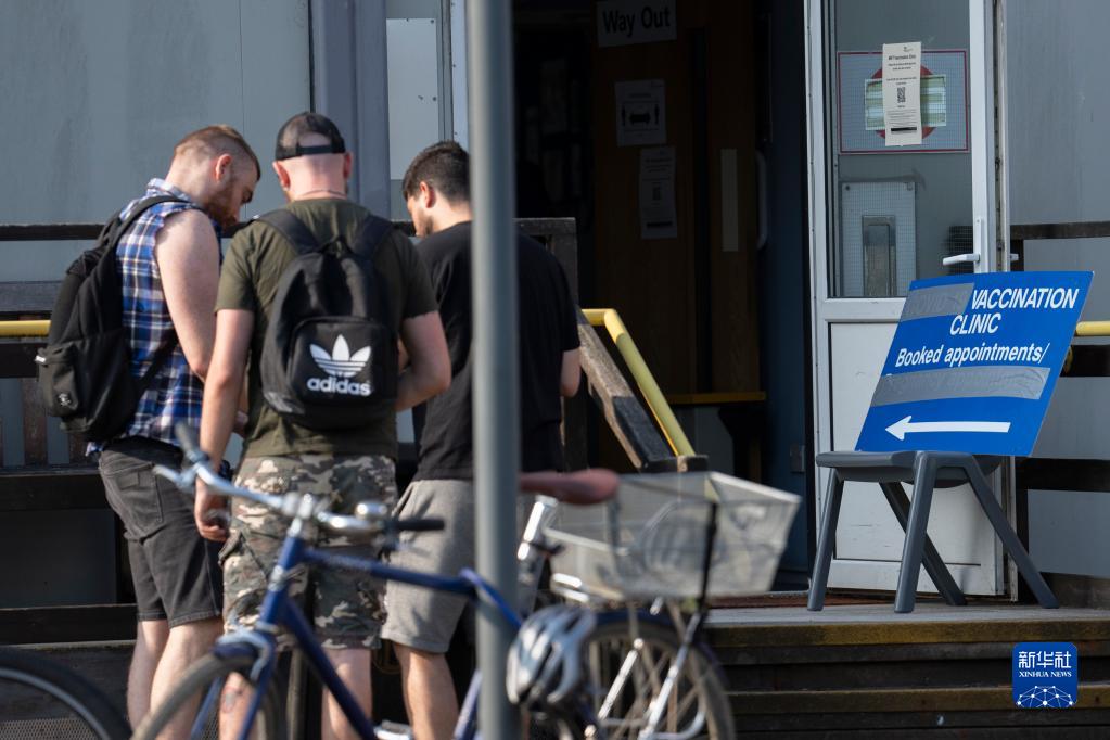 8月14日,人們在英國曼徹斯特一處猴痘疫苗接種點(diǎn)外排隊等待接種疫苗。