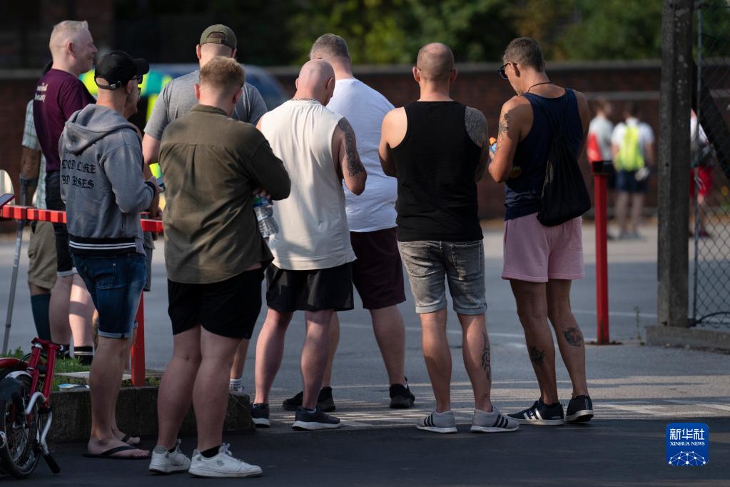 8月14日,人們在英國曼徹斯特一處猴痘疫苗接種點(diǎn)外排隊等待接種疫苗。
