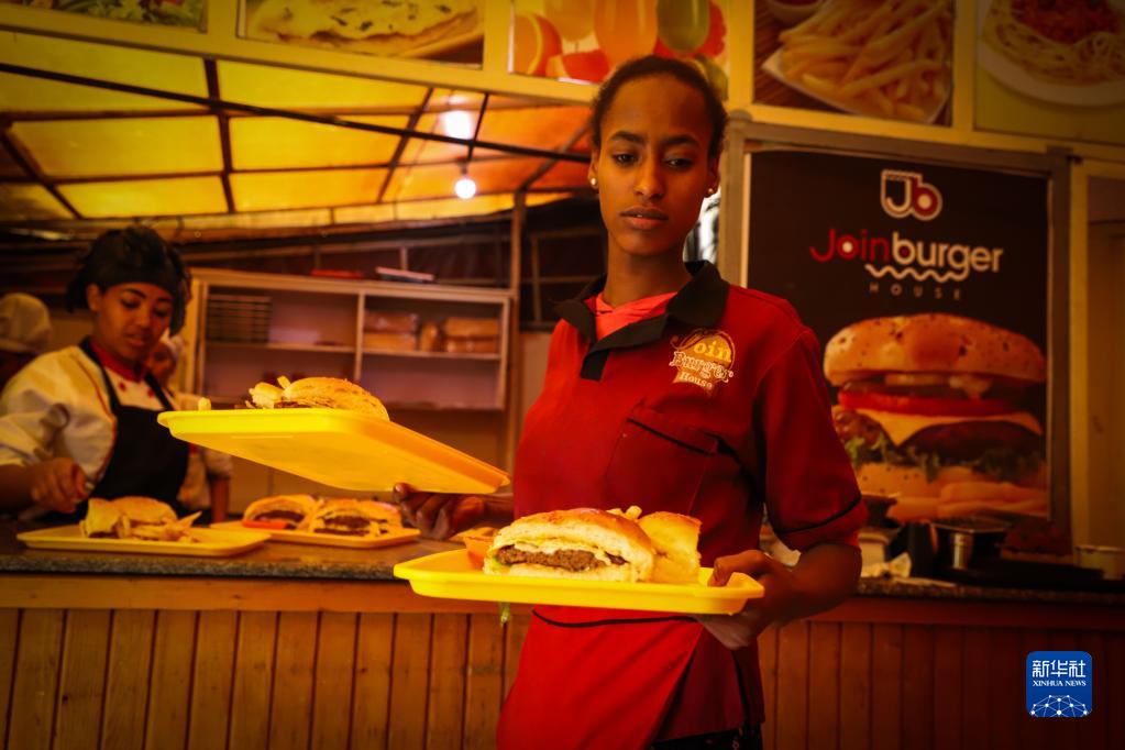 圖為7月19日拍攝的亞的斯亞貝巴一家與外賣(mài)服務(wù)公司合作的餐廳。