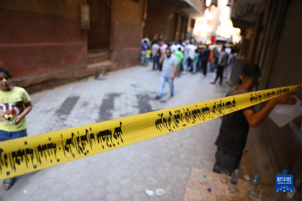 8月14日,在埃及吉薩省,警察在火災現場(chǎng)附近拉起警戒線(xiàn)。