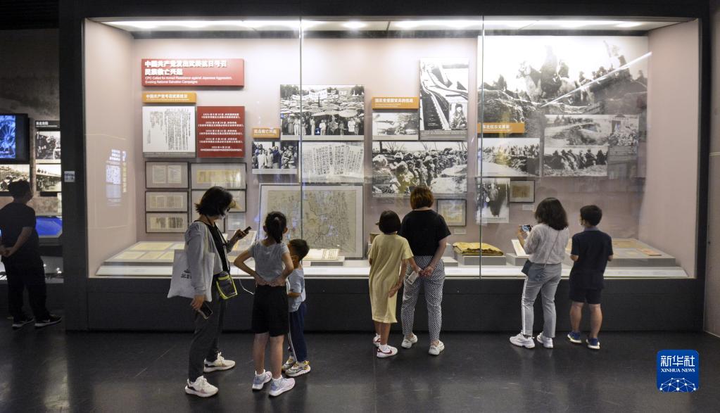 8月15日,觀(guān)眾在中國人民抗日戰爭紀念館內觀(guān)看展覽。