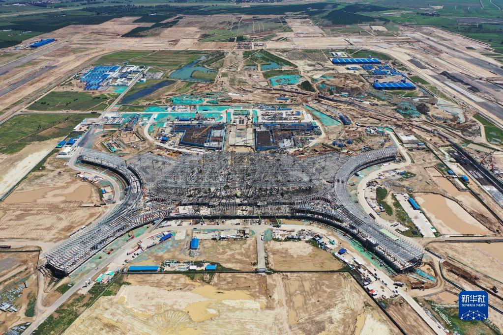 這是8月15日拍攝的呼和浩特新機場(chǎng)工程施工現場(chǎng)(無(wú)人機照片)。