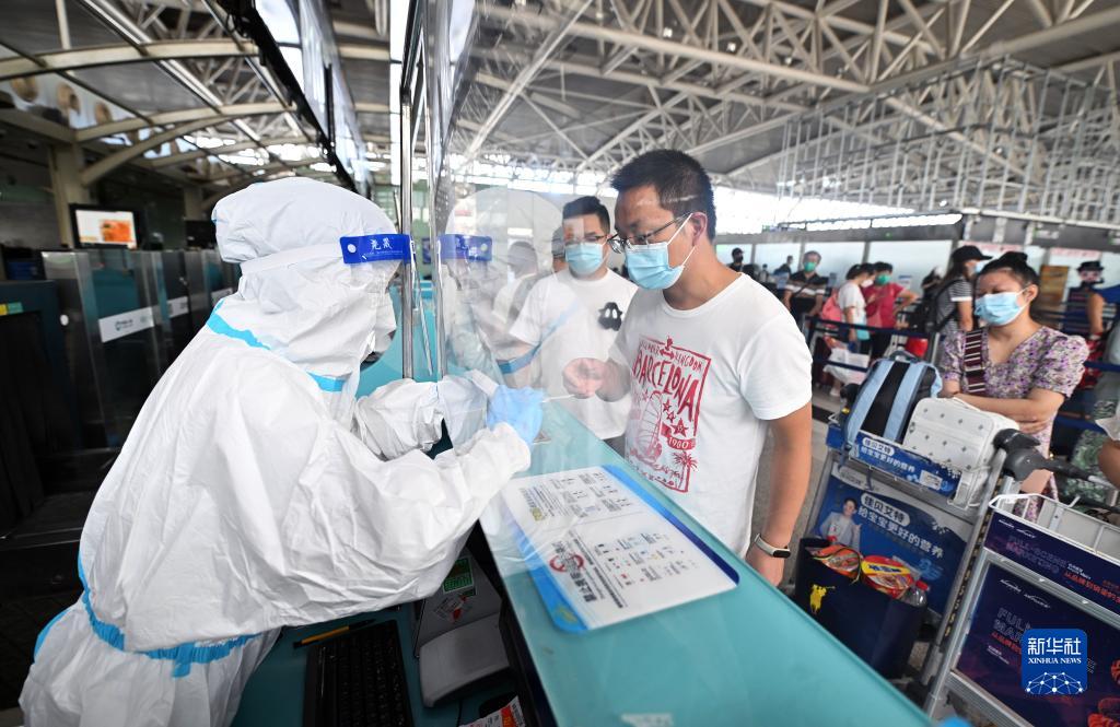8月15日,乘客在三亞鳳凰國際機場(chǎng)辦理登機手續。