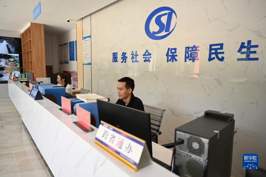 2022年6月24日,工作人員在位于下黨村的鄉鎮便民服務(wù)中心大廳里辦公。