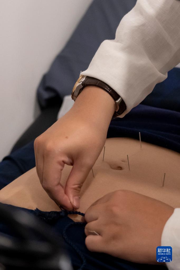 8月11日,在馬來(lái)西亞吉隆坡,中醫師阿米拉給患者針灸。