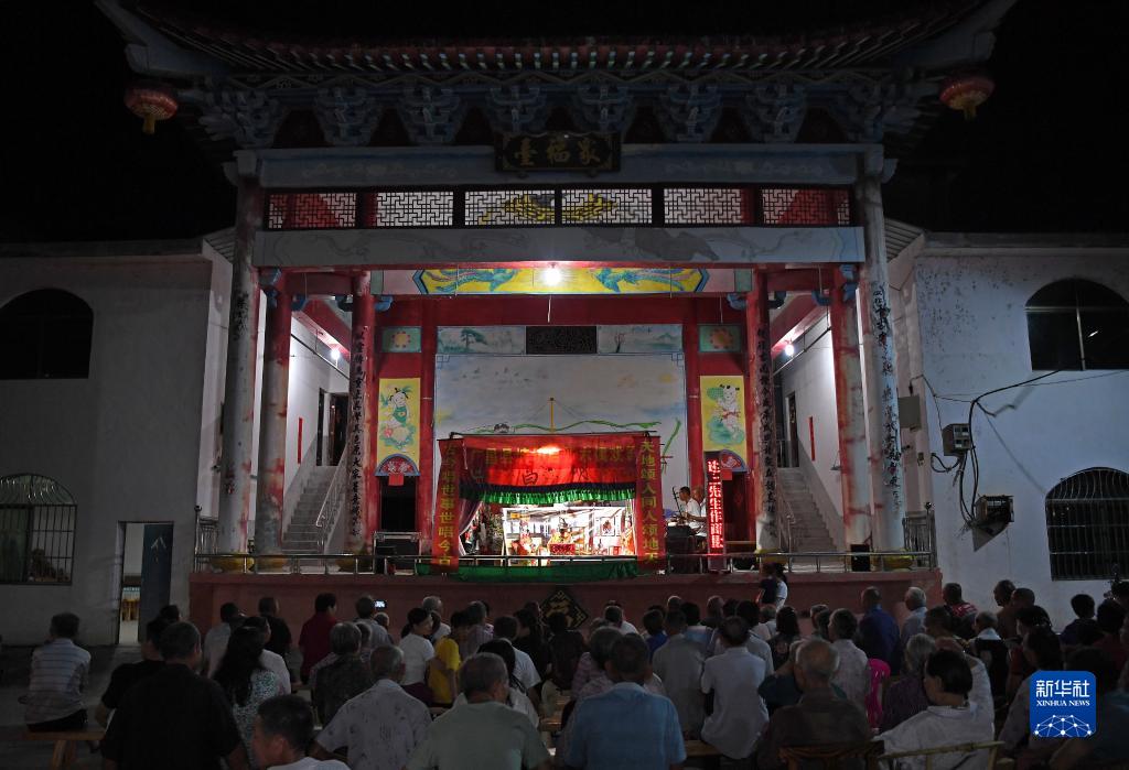 在江西省廣昌縣塘坊鎮大株村,村民們在觀(guān)看木偶戲演出(8月10日攝)。