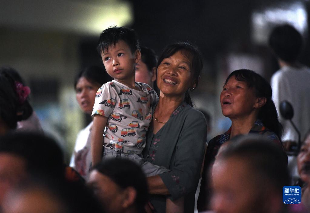 在江西省廣昌縣塘坊鎮大株村,村民在觀(guān)看木偶戲演出(8月10日攝)。