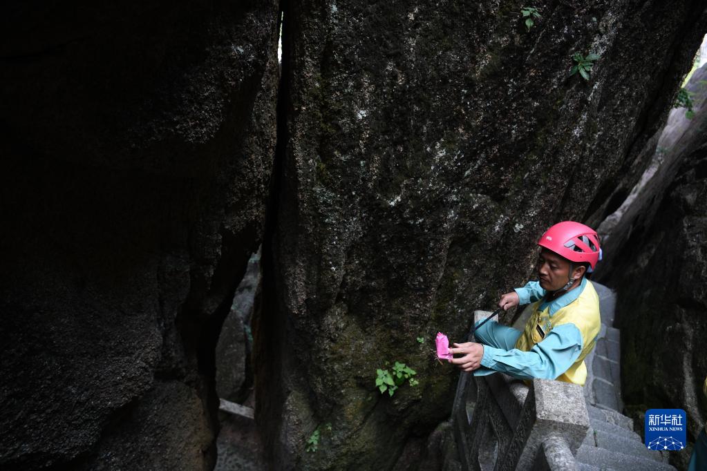 云海、奇石、迎客松……黃山上的這些風(fēng)景令許多游客印象深刻。在游玩時(shí),大家也許還會(huì )遇見(jiàn)這樣一些人:他們或拿著(zhù)設備獨自守護在迎客松旁,或在峭壁上攀爬清理垃圾……他們日復一日地守護著(zhù)美麗的黃山。