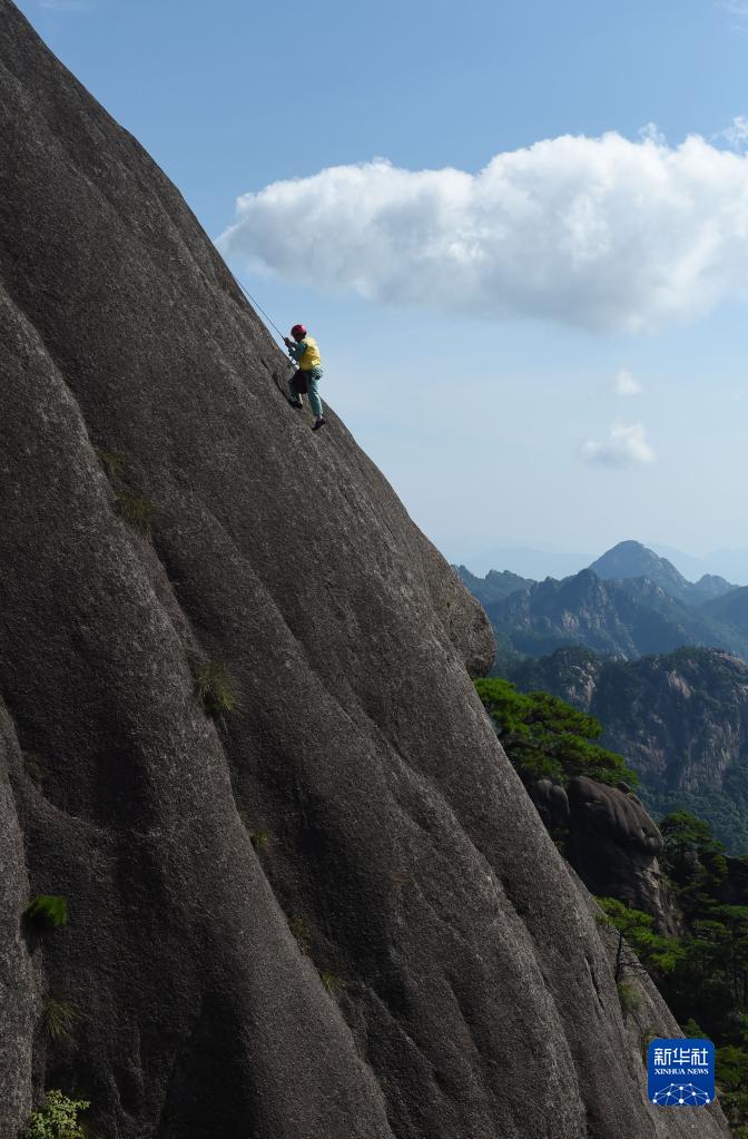 云海、奇石、迎客松……黃山上的這些風(fēng)景令許多游客印象深刻。在游玩時(shí),大家也許還會(huì )遇見(jiàn)這樣一些人:他們或拿著(zhù)設備獨自守護在迎客松旁,或在峭壁上攀爬清理垃圾……他們日復一日地守護著(zhù)美麗的黃山。