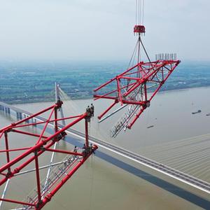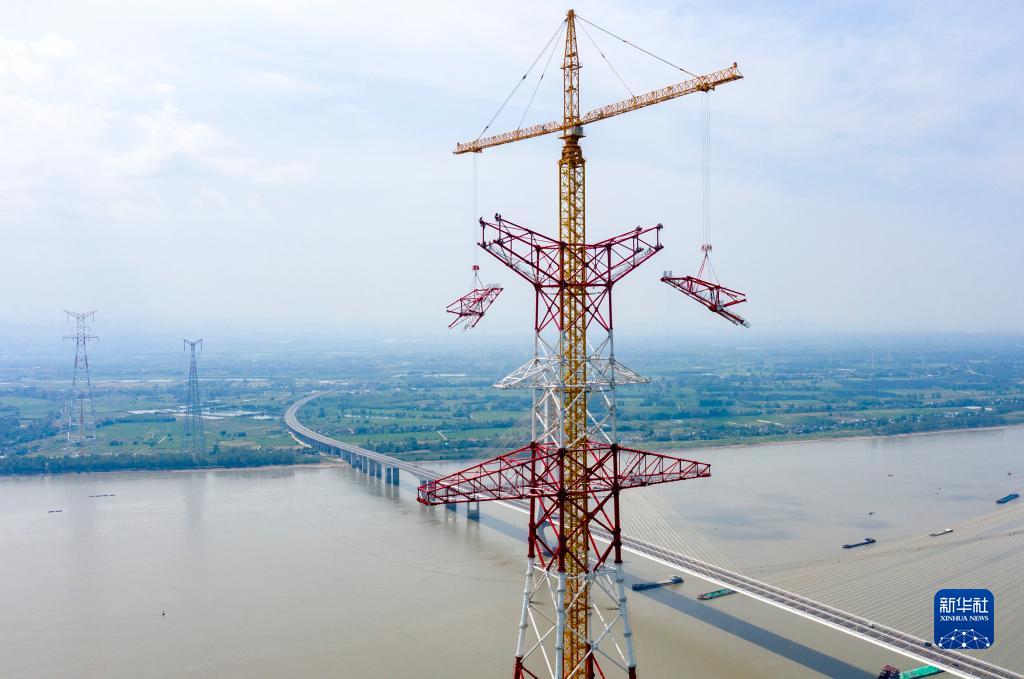 白鶴灘至浙江特高壓直流輸電工程安徽段長(cháng)江跨越塔全部組立完成