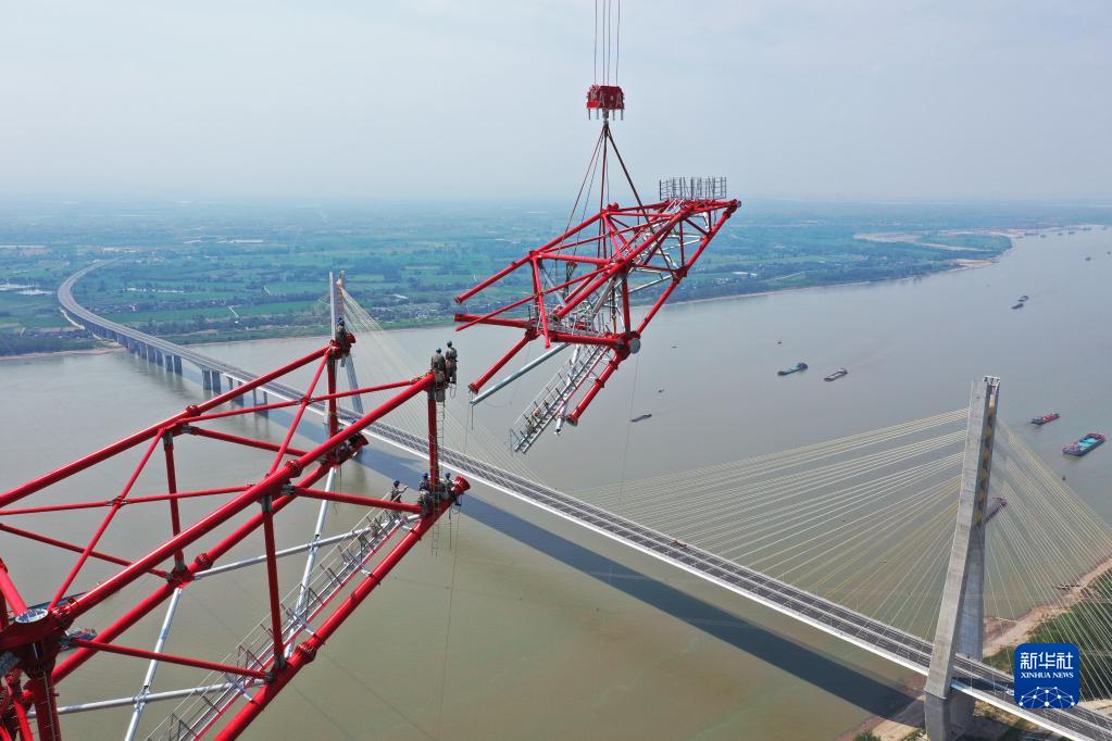 白鶴灘至浙江特高壓直流輸電工程安徽段長(cháng)江跨越塔全部組立完成