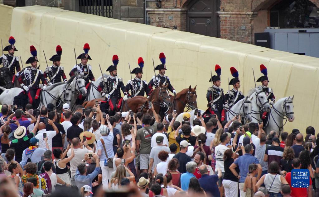8月16日,意大利憲兵在錫耶納賽馬節上表演。
