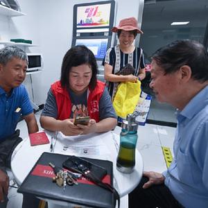 8月17日,在杭州市臨安區玲瓏街道東山社區便民服務(wù)站,黨員志愿者幫助居民填寫(xiě)公租房申請資料。