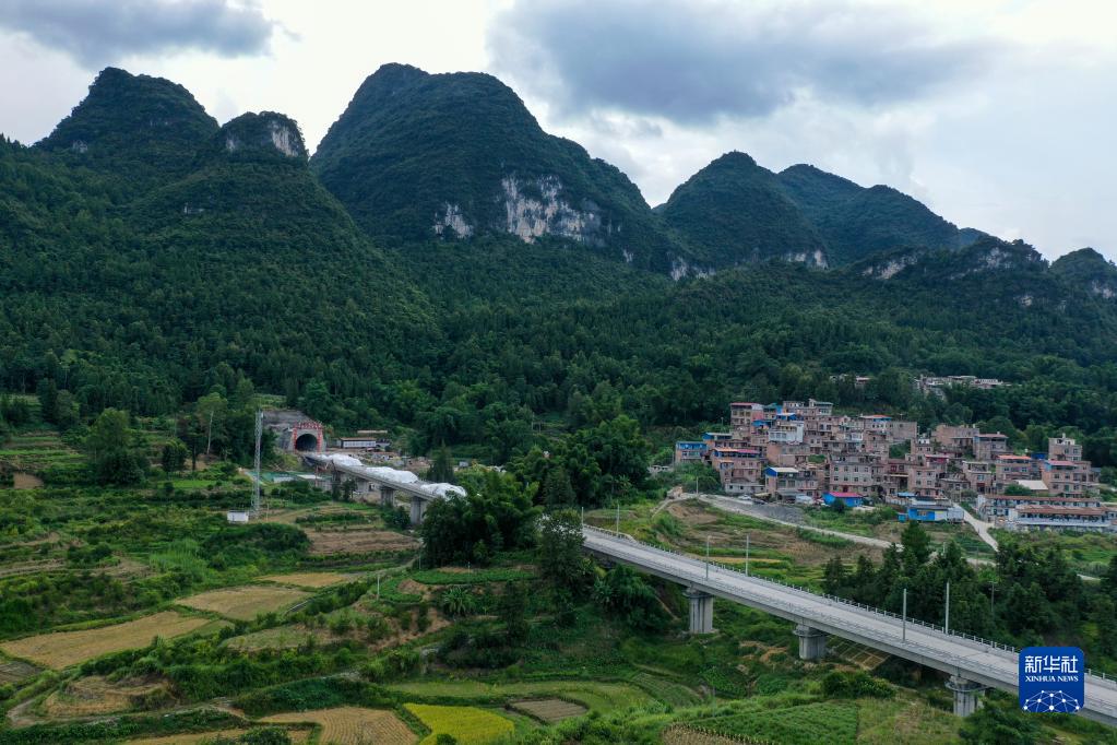 這是8月16日拍攝的位于廣西環(huán)江毛南族自治縣的貴南高鐵九萬(wàn)大山四號隧道(無(wú)人機照片)。