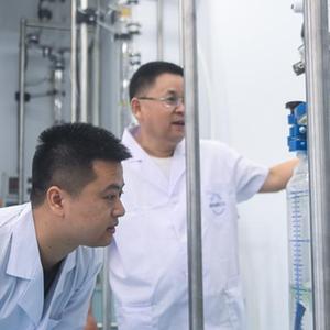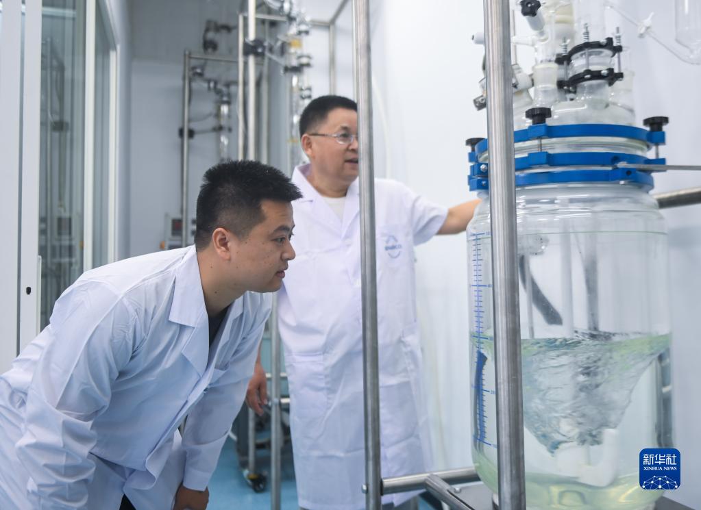 8月17日,在天目醫藥港醫藥產(chǎn)業(yè)孵化園的一家生物科技有限公司的實(shí)驗室里,杭州市引進(jìn)人才陳朗(左)查看實(shí)驗設備的運行情況。