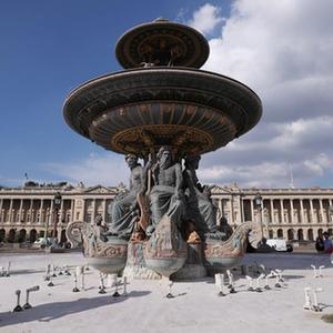 這是8月17日在法國巴黎協(xié)和廣場(chǎng)拍攝的暫停噴水的河神噴泉。