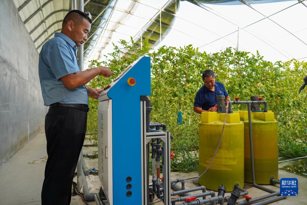 8月17日,技術(shù)人員在調試水肥滴灌設備。
