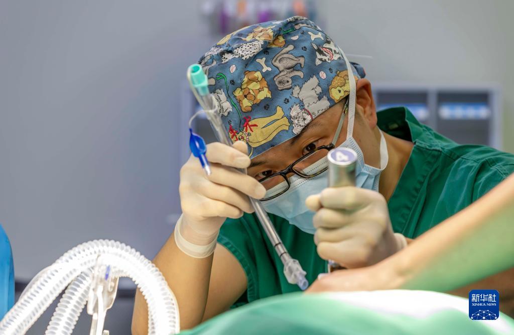 8月18日,在貴州省黔西市人民醫院,麻醉科醫生為全麻患者進(jìn)行氣管插管。