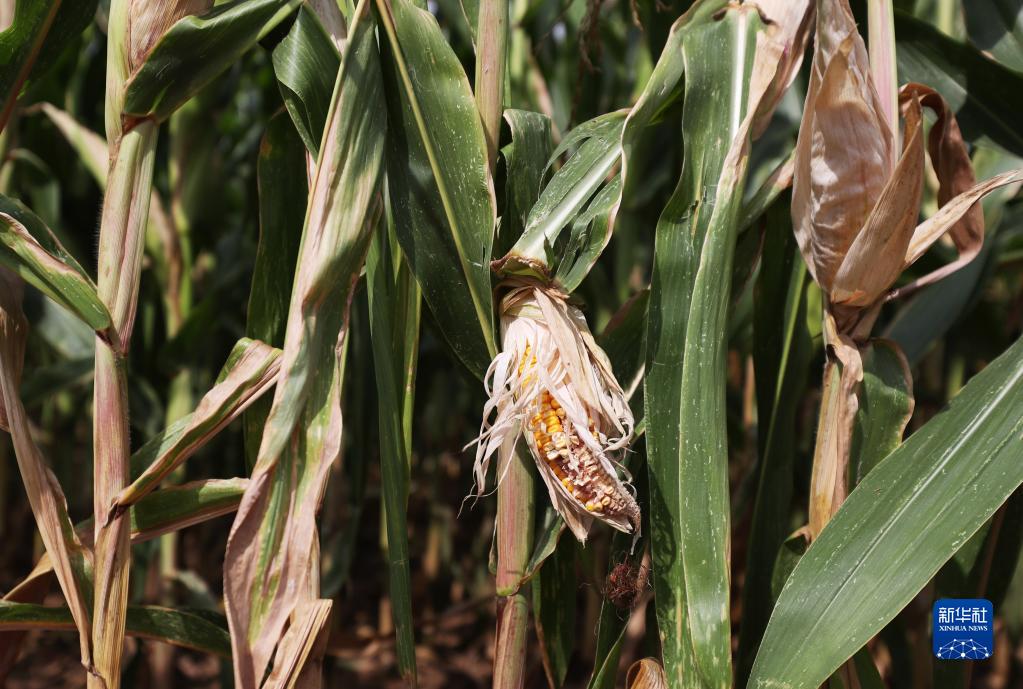 這是8月18日在法國巴黎西北約30公里處的皮伊塞-蓬圖瓦茲拍攝的受旱情影響的玉米田。