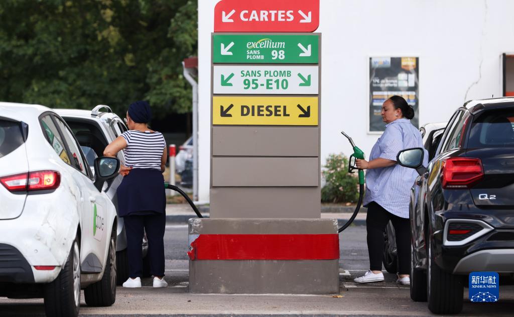 8月18日, 人們在法國巴黎郊區的一處加油站加油。