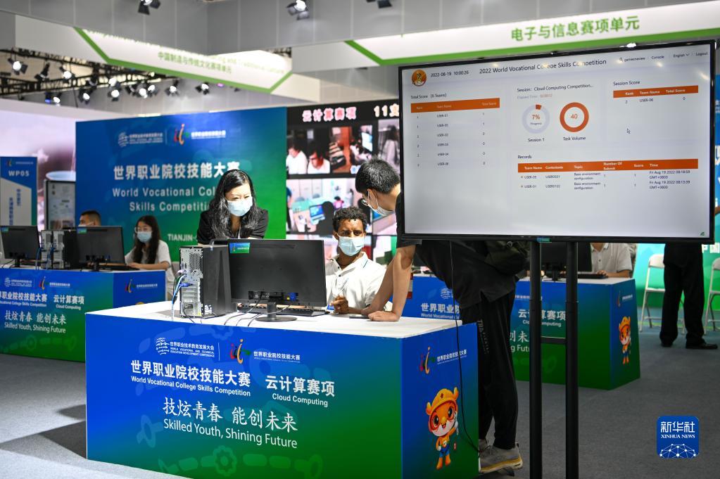 8月19日,在國家會(huì )展中心(天津),首屆世界職業(yè)院校技能大賽的參賽選手在進(jìn)行云計算賽項展演。