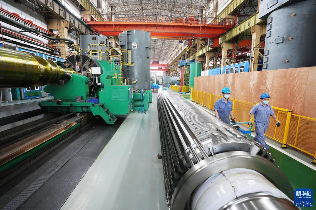 8月19日,工人從哈電集團哈爾濱電機廠(chǎng)有限責任公司的車(chē)間內經(jīng)過(guò)。新華社記者 王建威 攝