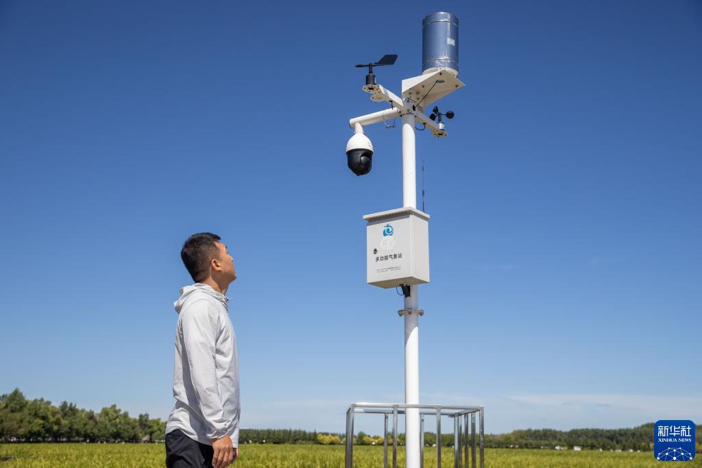 8月20日,工作人員在北大荒集團閆家崗農場(chǎng)有限公司農業(yè)現代化示范區內檢查基于5G網(wǎng)絡(luò )支持下的多功能氣象站。