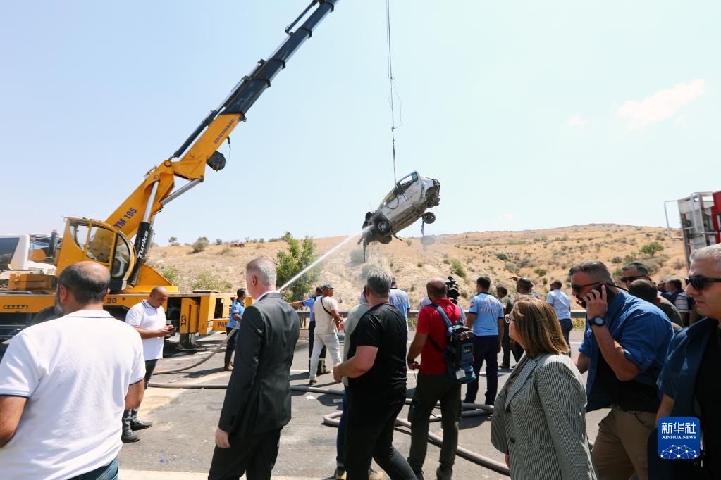 這是8月20日在土耳其加濟安泰普省拍攝的交通事故現場(chǎng)。