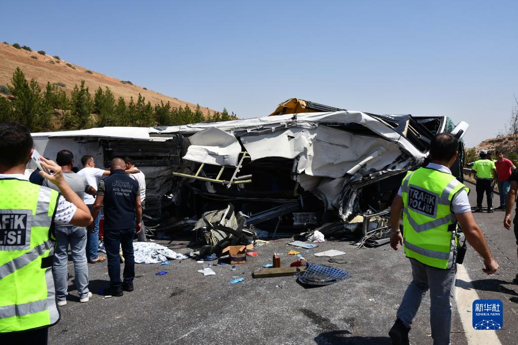 這是8月20日在土耳其加濟安泰普省拍攝的交通事故現場(chǎng)。