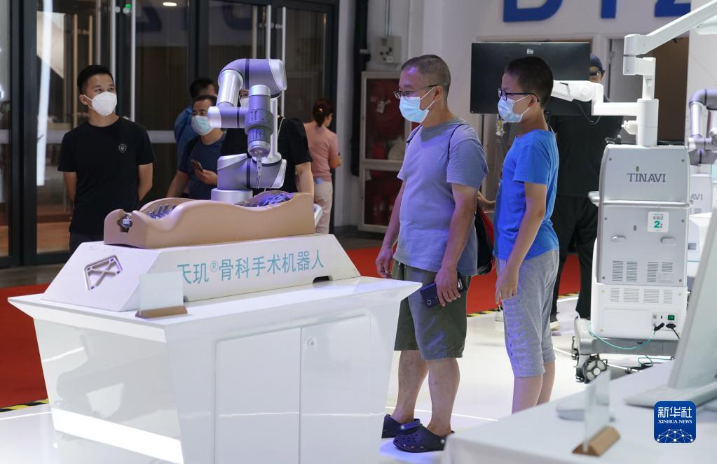 這是在2022世界機器人博覽會(huì )“機器人+醫療”展區現場(chǎng)拍攝的骨科手術(shù)機器人(8月20日攝)。