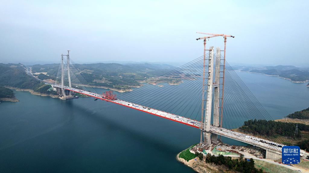 8月21日拍攝的十淅高速丹江口水庫特大橋(無(wú)人機照片)。