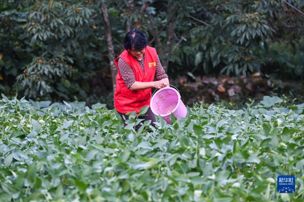 8月21日,在浙江省淳安縣屏門(mén)鄉金陵村徐家莊自然村的菜地內,黨員志愿者在澆水。