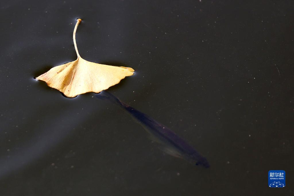 8月20日,在山東省棗莊市東湖公園,一條小魚(yú)在水面的葉子下游弋。