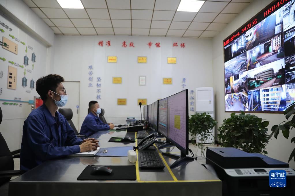 8月15日,在酒鋼集團榆中鋼鐵有限責任公司煉鋼分廠(chǎng)中控室,工作人員通過(guò)監控調度現場(chǎng)工作。