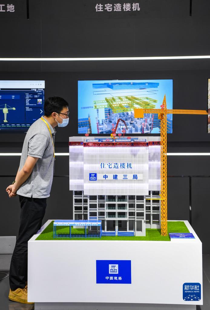 8月22日,嘉賓在2022中國國際智能產(chǎn)業(yè)博覽會(huì )重慶館參觀(guān)住宅造樓機。