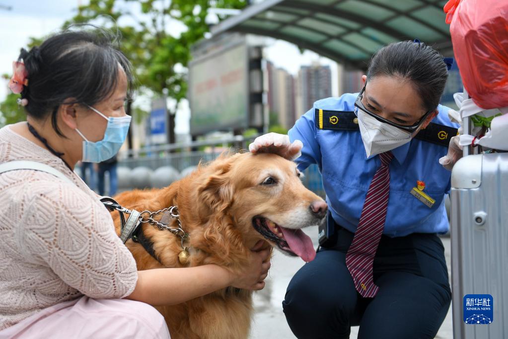 8月19日,在惠州南站,客運員孫麗娜(右)引導張莉和滿(mǎn)悅出站后與滿(mǎn)悅告別。