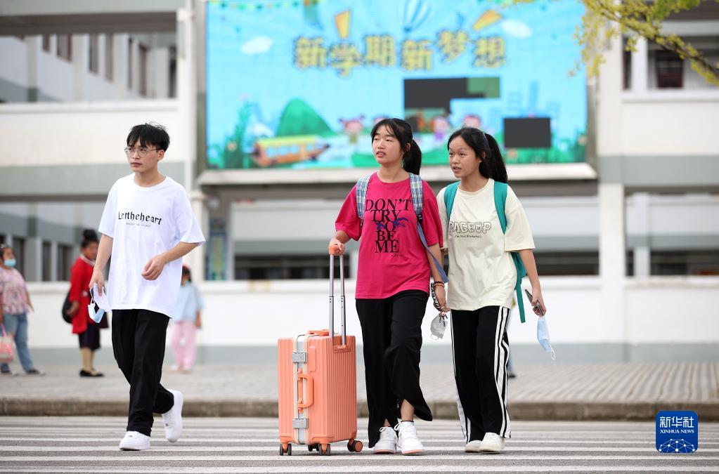 8月22日,貴州省黔東南苗族侗族自治州丹寨縣第二中學(xué)學(xué)生拿著(zhù)行李走在校園里。
