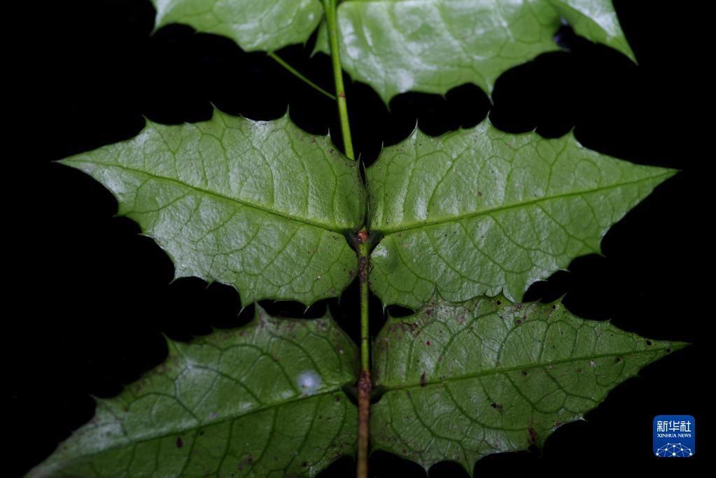 在野外拍攝的尖齒衛矛的葉片(2021年8月10日攝)。新華社發(fā)(胡君 攝)