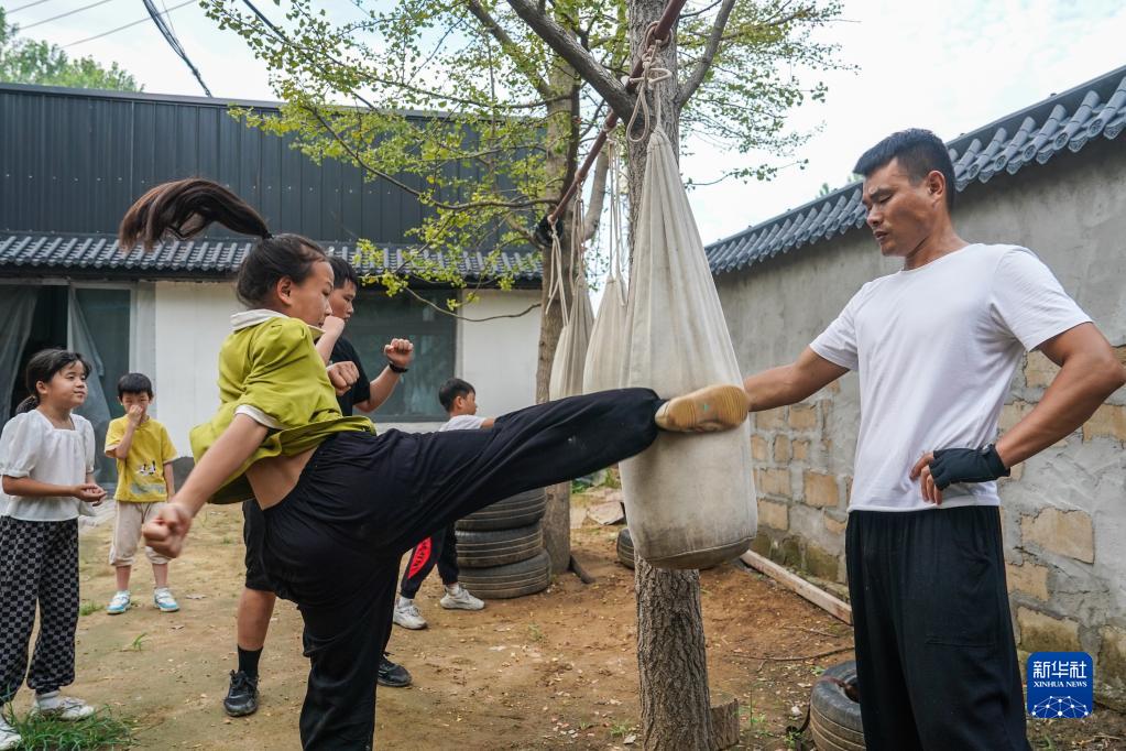 新華全媒+丨江蘇邳州:一個(gè)父親三個(gè)娃 掀起村里武術(shù)熱