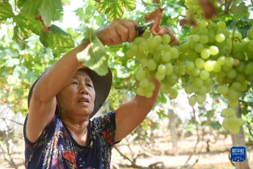 8月23日,在廣西全州縣才灣鎮毛竹山村,當地村民在收摘葡萄。