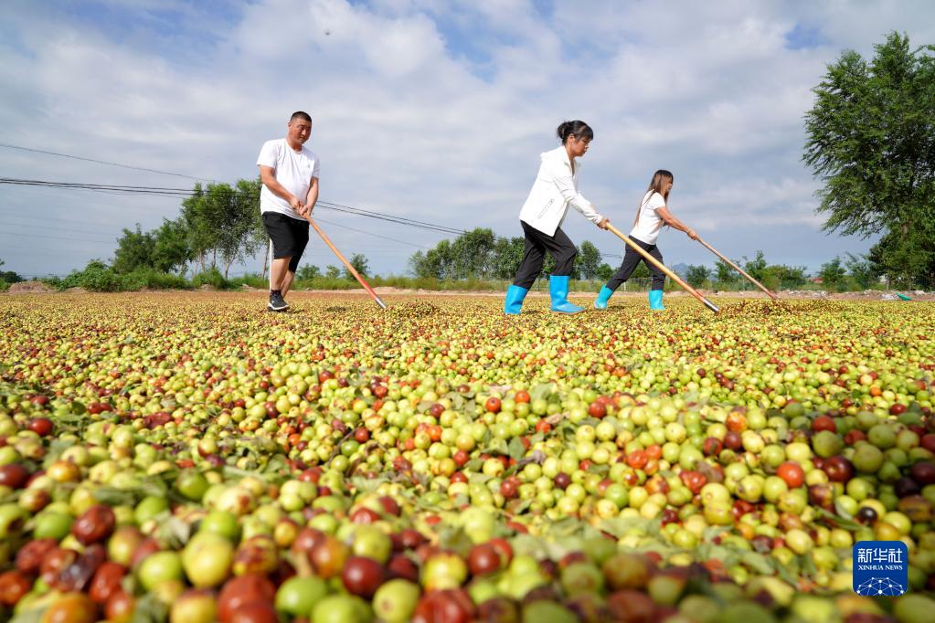 8月23日,河北省邢臺市內丘縣東石河村村民在晾曬酸棗。