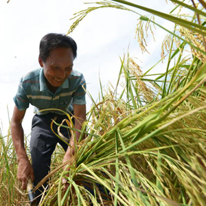 8月23日,村民在貴州省綏陽(yáng)縣旺草鎮萬(wàn)畝大壩搶收水稻。