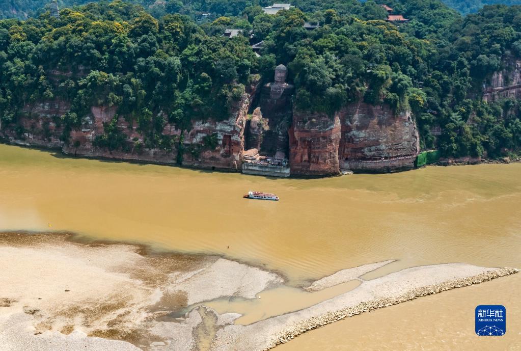近期,持續高溫晴熱天氣使四川省多地出現不同程度的旱情,長(cháng)江上游的主要支流岷江、青衣江和大渡河三條水系的上游來(lái)水均少于往年同期,導致樂(lè )山大佛前方的三江匯流處水位持續降低,部分河床與江灘裸露,樂(lè )山大佛罕見(jiàn)露出底座。