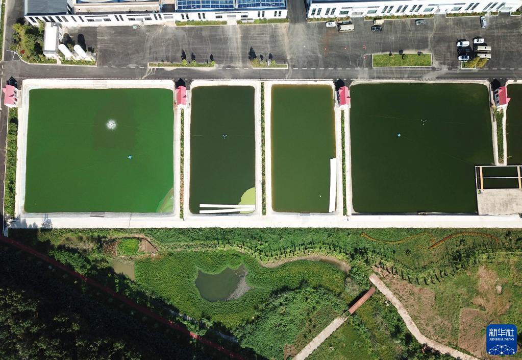 8月23日,山東省微山縣微山湖現代漁業(yè)產(chǎn)業(yè)園的生態(tài)魚(yú)塘(無(wú)人機照片)。