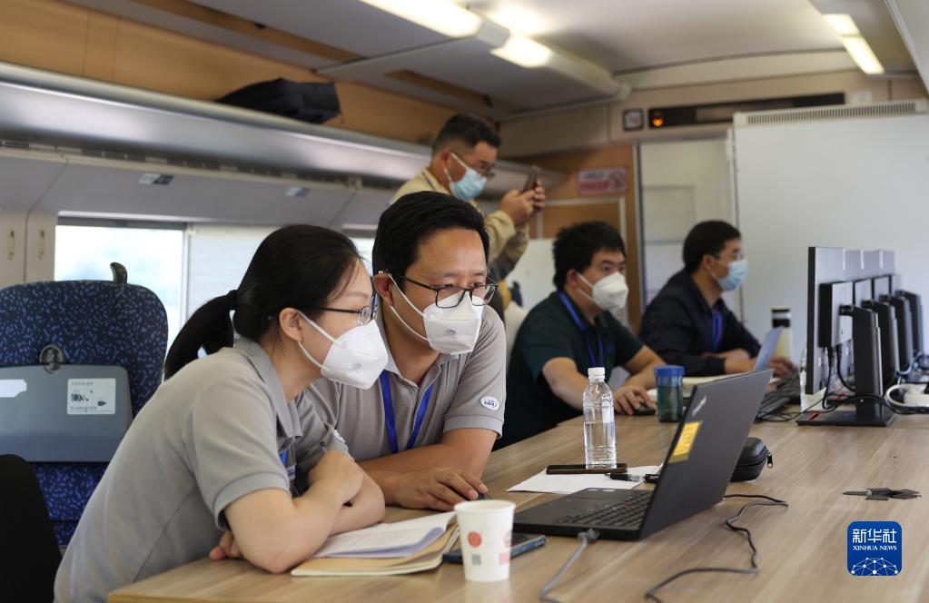 8月23日,工作人員在彌蒙高鐵綜合檢測車(chē)內工作。