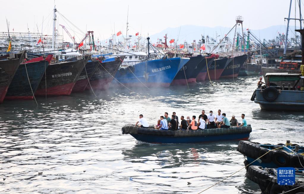 8月24日,在廣東陽(yáng)江市海陵島閘坡國家級中心漁港,海上從業(yè)人員搭乘小艇靠岸。