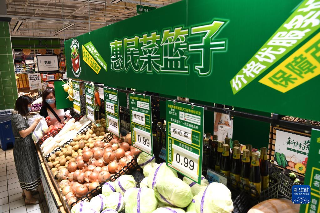 8月25日,市民在合肥市經(jīng)開(kāi)區芙蓉社區一家超市選購“惠民菜”。